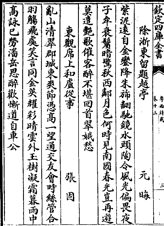 除浙东留题越亭 元 晦紫泥远自金銮降朱旆翻驰镜水头陶令风光偏畏夜