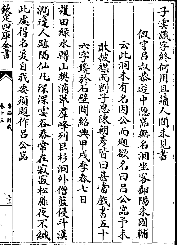 子云识字终何用且读人间未见书假守吕叔恭游中隐嵓无名洞坐客鄱阳朱国辅