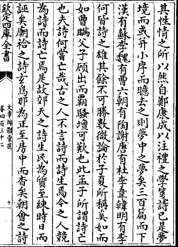 其性情之所以然自郑康成以注礼之学笺诗已是梦境而或并小序而臆去之则梦中之梦矣三百篇而下