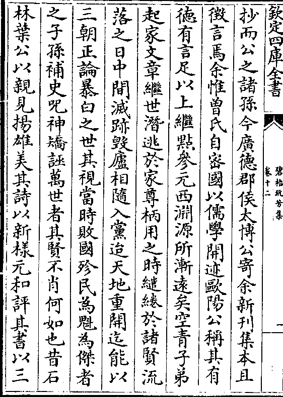 抄而公之诸孙今广德郡侯太博公寄余新刋集本且徵言焉余惟曾氏自密国以儒学开迹欧阳公称其有