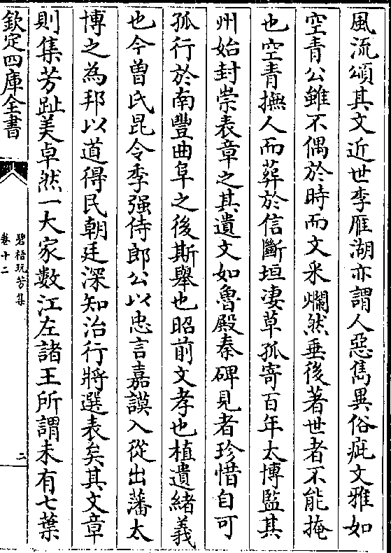 风流颂其文近世李雁湖亦谓人恶隽异俗疵文雅如空青公虽不偶于时而文采烂然垂后著世者不能掩