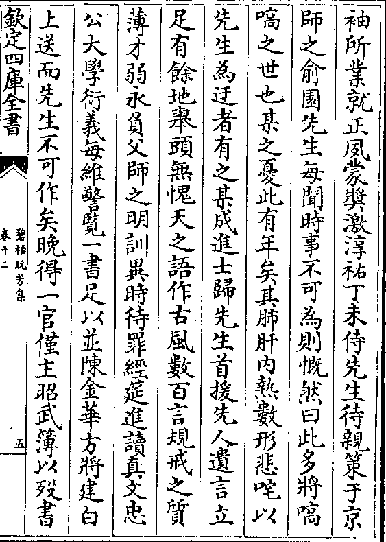 袖所业就正夙蒙奖激淳祐丁未侍先生待亲策于京师之俞园先生每闻时事不可为则慨然曰此多将嗃