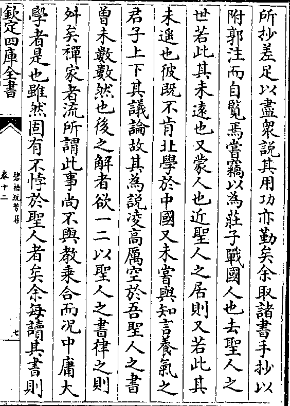 所抄差足以尽众说其用功亦勤矣余取诸书手抄以附郭注而自览焉尝窃以为庄子战国人也去圣人之