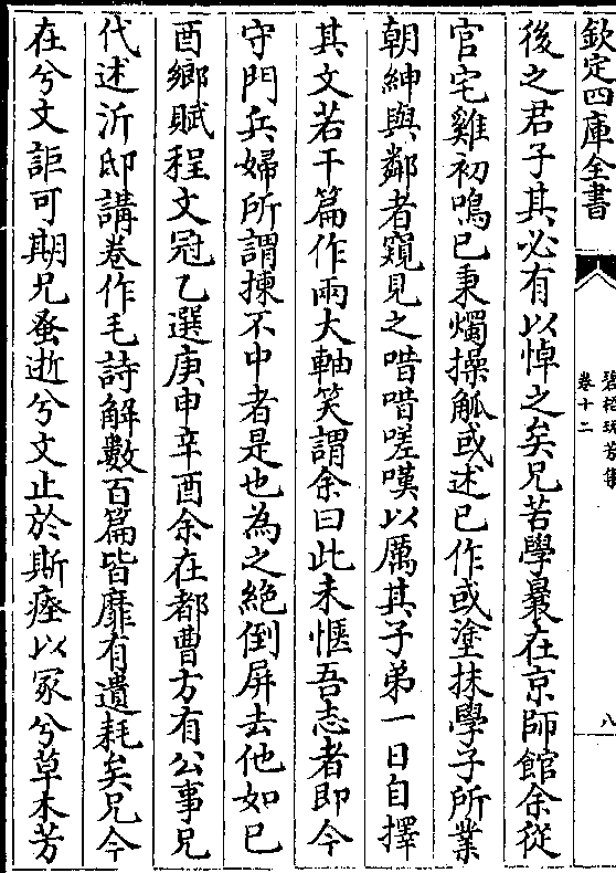 后之君子其必有以悼之矣兄苦学曩在京师馆余从官宅鸡初鸣己秉烛操觚或述已作或涂抹学子所业