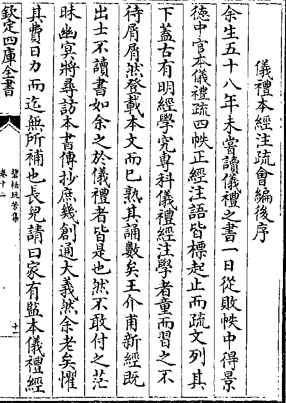 仪礼本经注疏会编后序余生五十八年未尝读仪礼之书一日从败帙中得景
