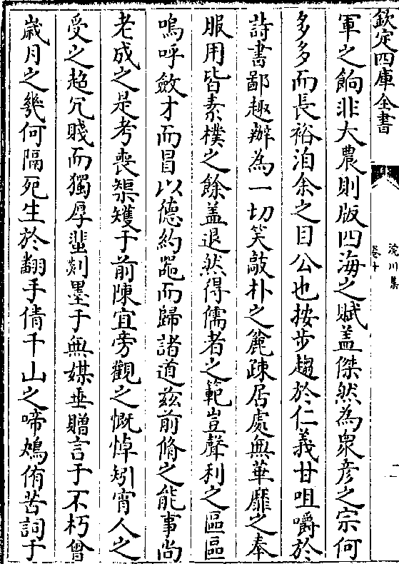 军之饷非大农则版四海之赋盖杰然为众彦之宗何多多而长裕洎余之目公也按步趋于仁义甘咀嚼于