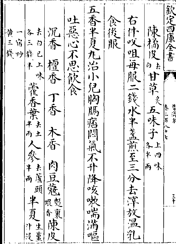 (人曰何效之速也愚曰木香顺气肉豆蔻/所以治癔又加之以热服去寒所以立效)欬嗽属肺肺