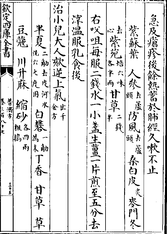 方疹后欬嗽最未易治加减方(出永类/钤方)