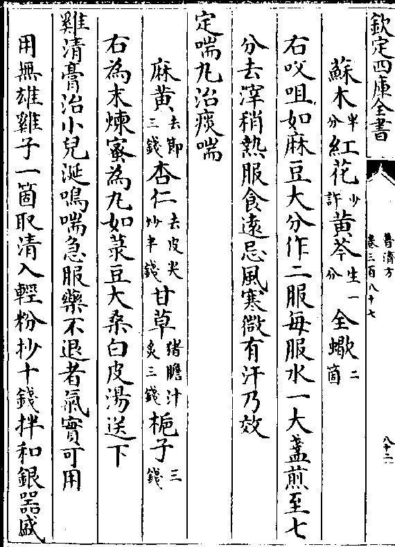 (丸逐痰共治半月无效其證气粗涎盛时呕吐来时百/十声方退退后惊悸多团自汗招愚视曰未百日喘久)