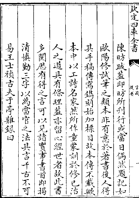 陈昉跋盖即昉所刋行或当日偶然题记如欧阳修试笔之类本非有意于著书后人得