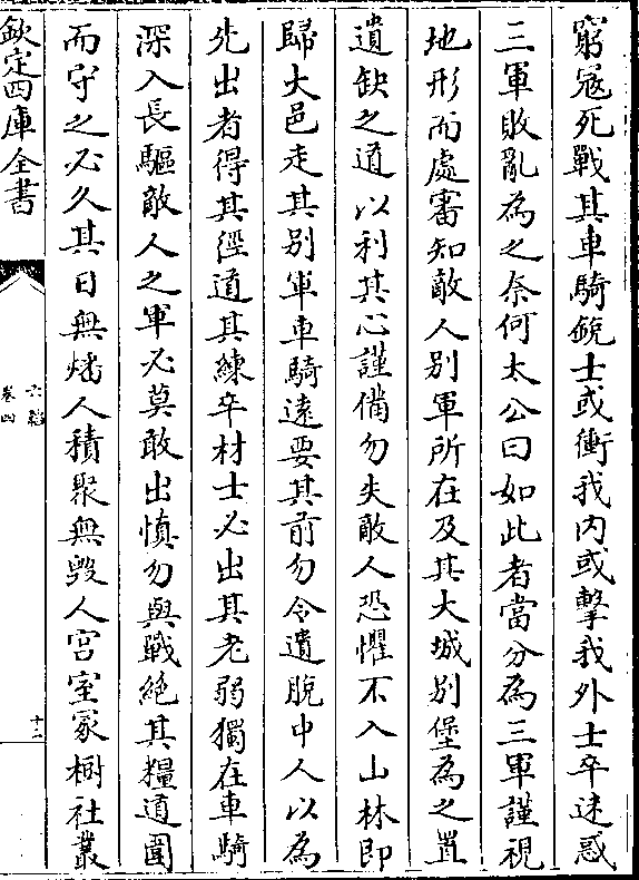穷寇死战其车骑锐士或冲我内或击我外士卒迷惑三军败乱为之奈何太公曰如此者当分为三
