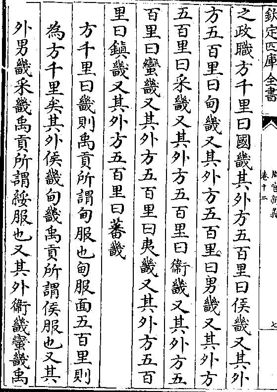 又其外方五百里曰采服又其外方五百里曰卫服又