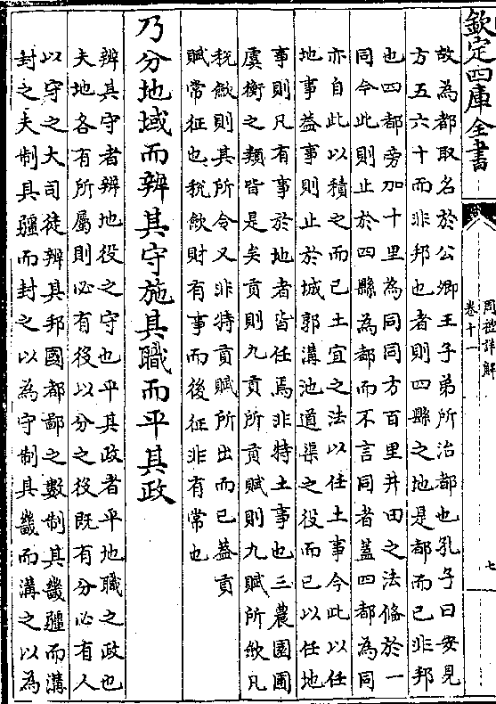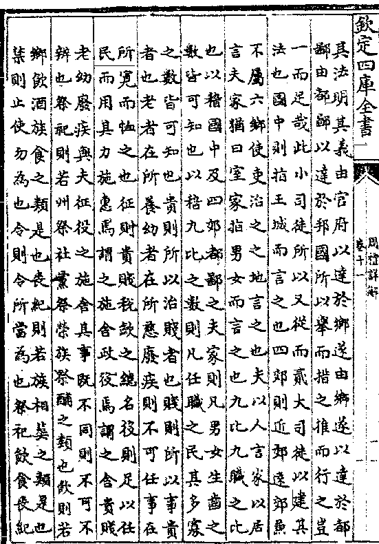 (其法明其义由官府以达于乡遂由乡遂以达于都/鄙由都鄙以达于邦国所以举而措之推而行之岂)(一而足哉此小司徒所以又从而贰大司徒以建其/法也国中则指王城而言之也四郊则近郊远郊兼)