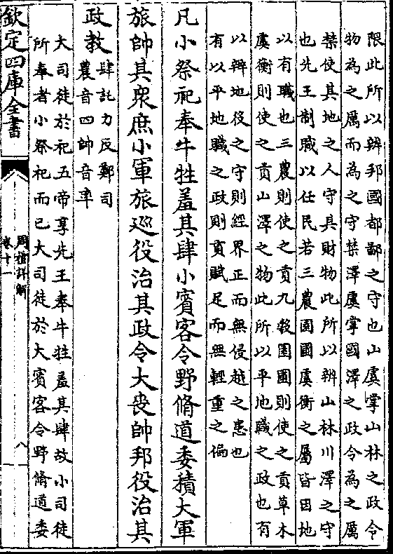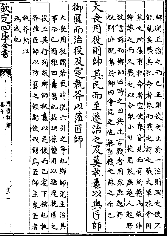 (田役则曰治其徒庶之政令今此用众庶不谓之徒/则其所用若大询之属非军旅田役之事也凡用众)(庶必有政以正之教以导之戒以敕其怠忽禁以止/之使勿为皆小司徒所掌以治众庶也众之所在不)