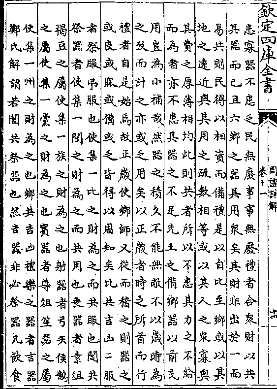 (或忘也四闾为族使之相葬能相葬而后用之则足/以为卒矣其容体不足以相及则有徽帜以相明其)(言语不足以相通则有服饰以相辨此卒所以从衣/也五族为党使之相救能相救而后用之则足以为)