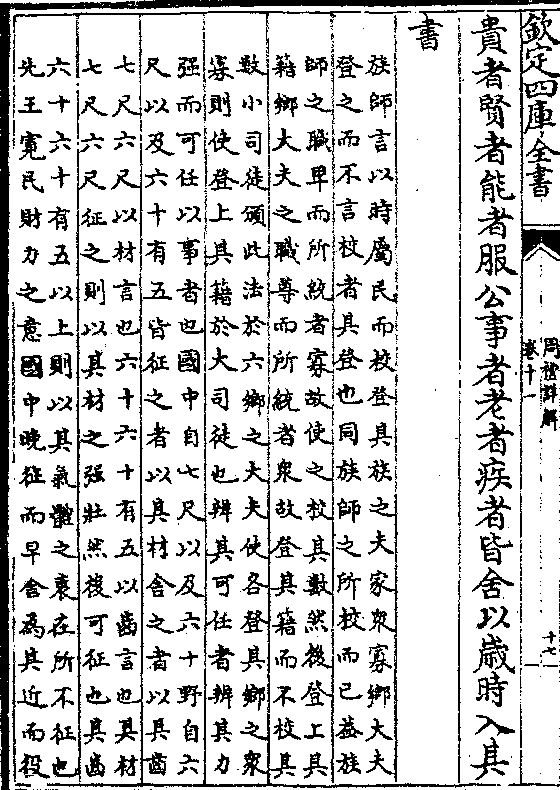 (强而可任以事者也国中自七尺以及六十野自六/尺以及六十有五皆征之者以其材舍之者以其齿)