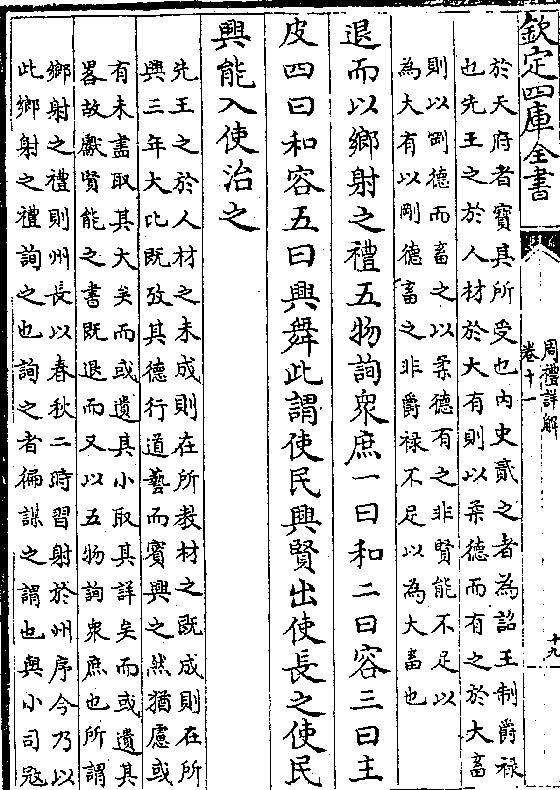 (所试也其既知之则以乡饮之礼而宾之其未知之/则以乡射之礼而询之其待之为己详其求之为已)