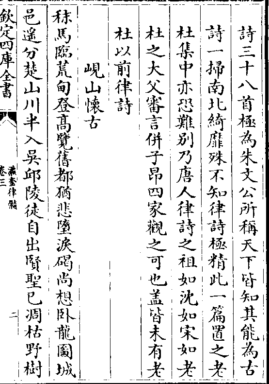 诗三十八首极为朱文公所称天下皆知其能为古诗一扫南北绮靡殊不知律诗极精此一篇置之老