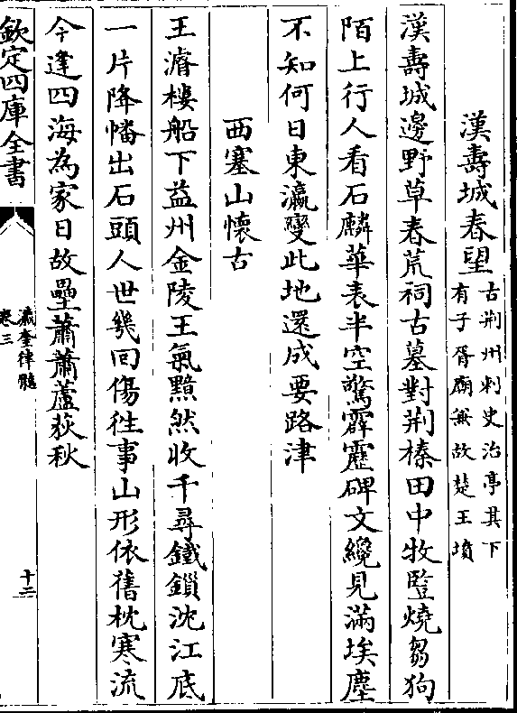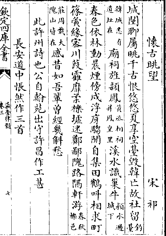 怀古眺望 宋 祁城闉聊属眺千古恨悠悠夏享空台毁韩亡故社留(钓/台)