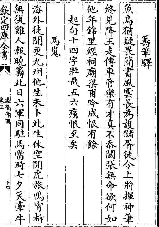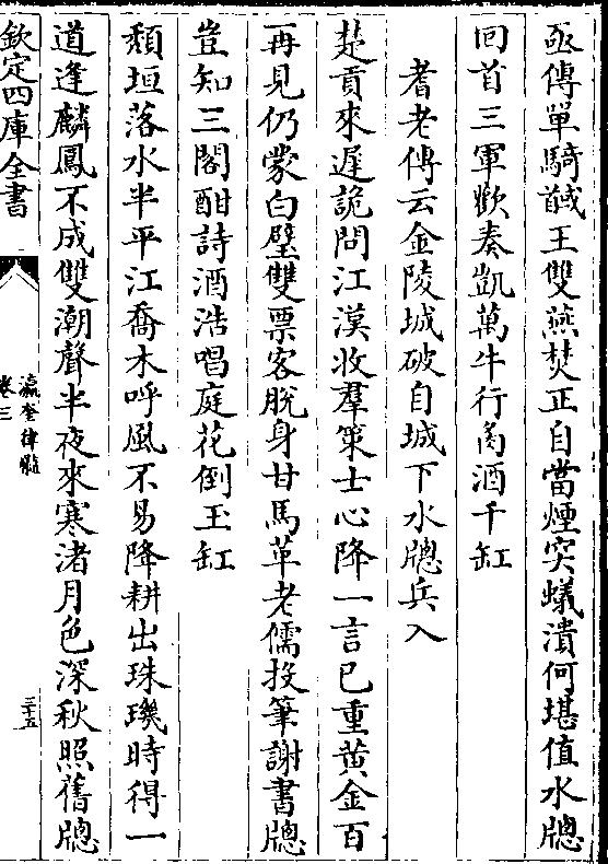 亟传单骑馘王双燕焚正自当烟突蚁溃何堪值水窗回首三军欢奏凯万牛行䏑酒千缸