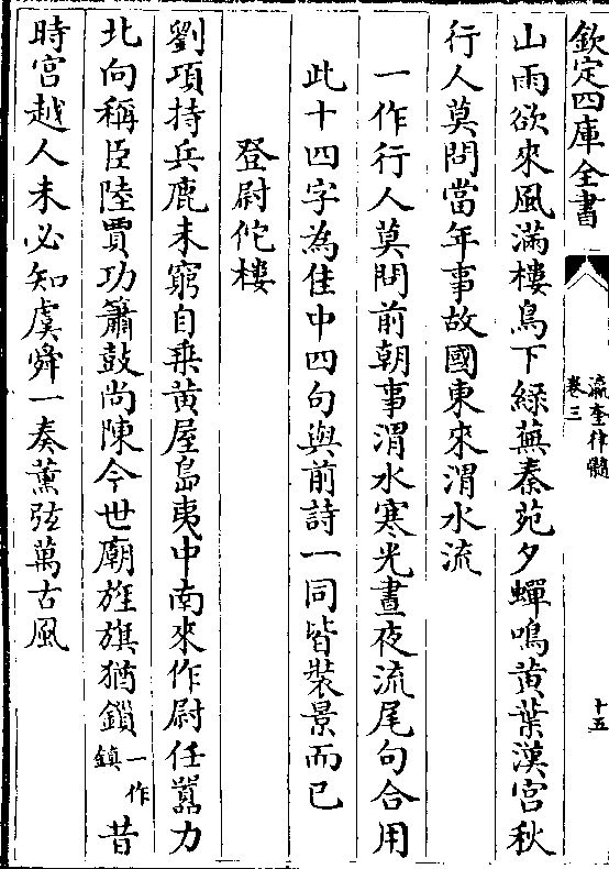 钦定四库全书瀛奎律髓卷三 元 方回 编
