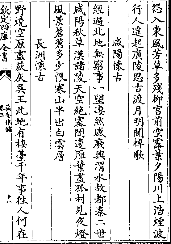 风千岭树西日一洲蘋又渡湘江水湘江水复春三四有无穷之味不必指言何代何人而感旧怀今