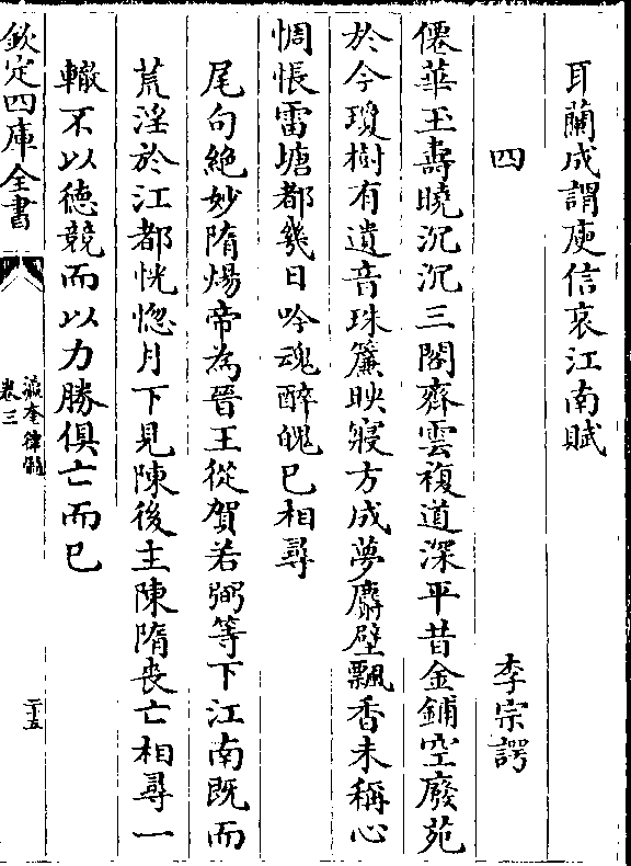 玄武开新苑龙舟燕幸频渚莲参法驾沙鸟犯钩陈寿献金茎露歌翻玉树尘夜来江令醉别诏宿临春