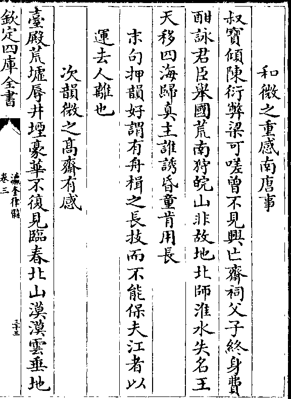 和微之重感南唐事叔宝倾陈衍弊梁可嗟曾不见兴亡斋祠父子终身费