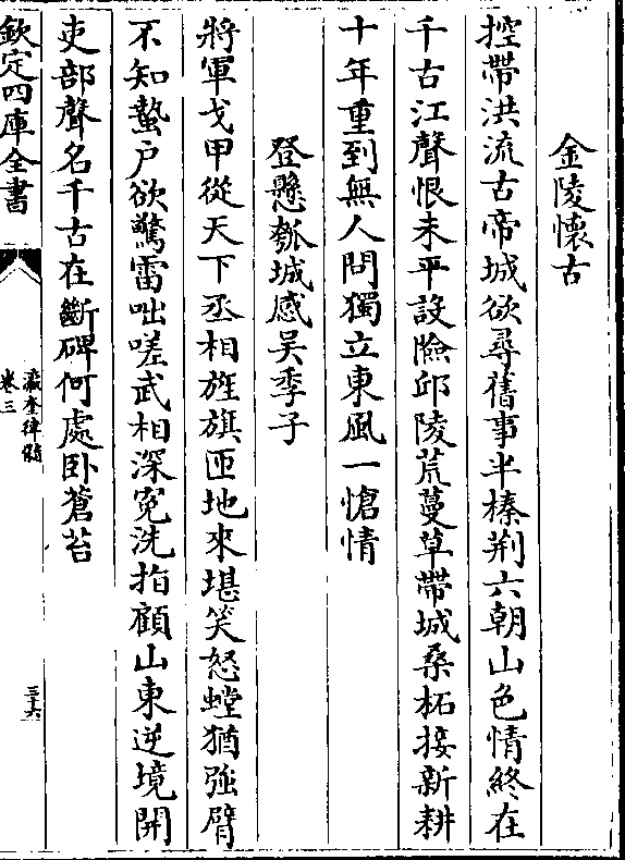 金陵怀古控带洪流古帝城欲寻旧事半榛荆六朝山色情终在