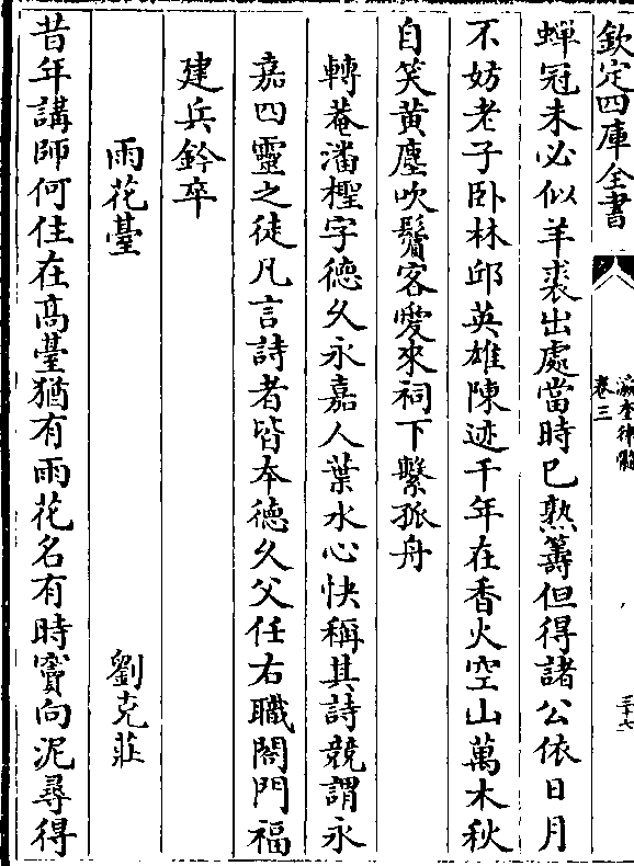 转庵潘柽字德久永嘉人叶水心快称其诗竞谓永