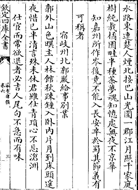 水路东连楚人烟北接巴山光围一郡江月照千家庭树纯栽橘园畦半种茶梦魂知忆处无夜不京华