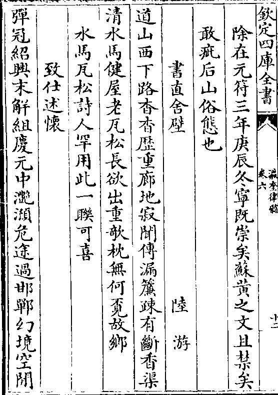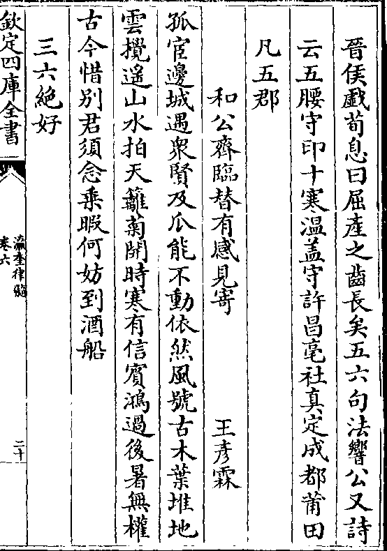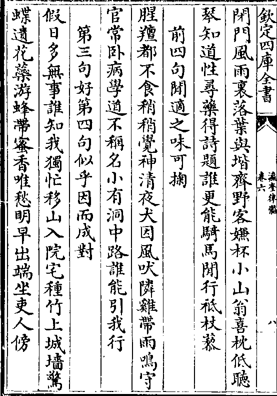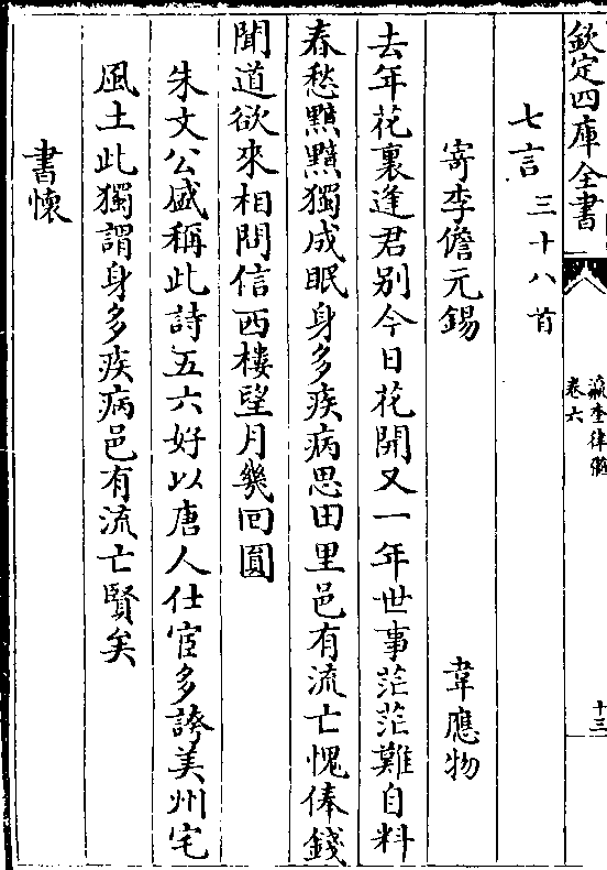 钦定四库全书瀛奎律髓卷六 元 方回 编