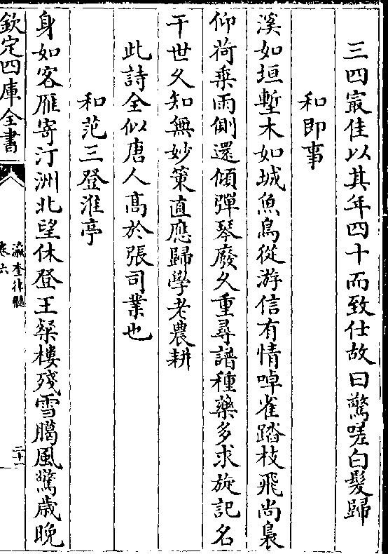 三四最佳以其年四十而致仕故曰惊嗟白发归和即事