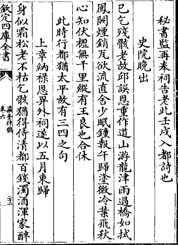 秘书监再奉祠告老此壬戌入都诗也史院晚出