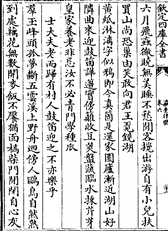六月飞虻彻晓无美睡不愁閒客搅出游自有小儿扶买山尚恐巢由笑敢向君王觅镜湖