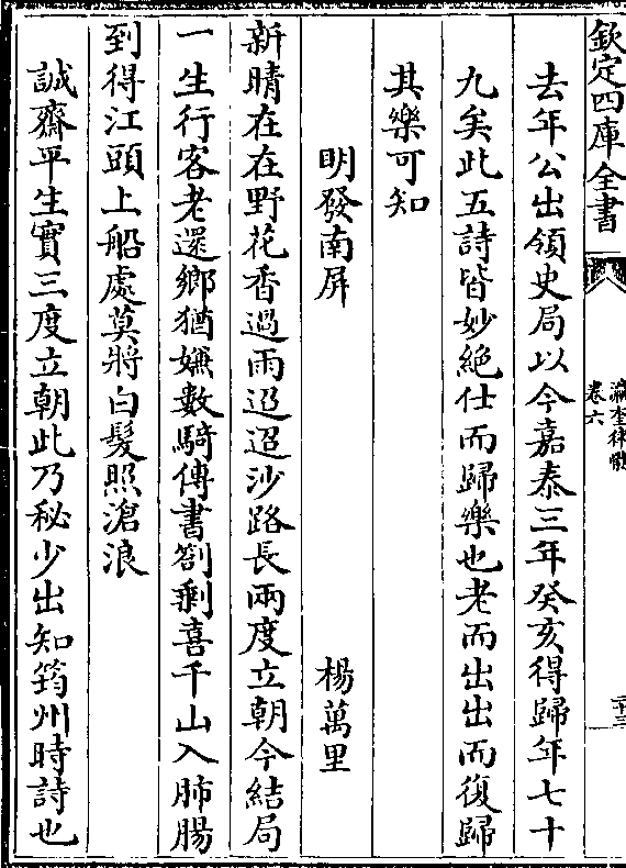 去年公出领史局以今嘉泰三年癸亥得归年七十九矣此五诗皆妙绝仕而归乐也老而出出而复归