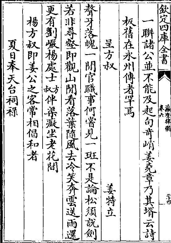 一联诸公并不能及起句奇峭姜尧章乃其婿云诗板旧在永州传者罕焉