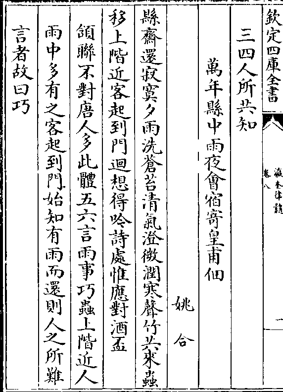 三四人所共知万年县中雨夜会宿寄皇甫佃