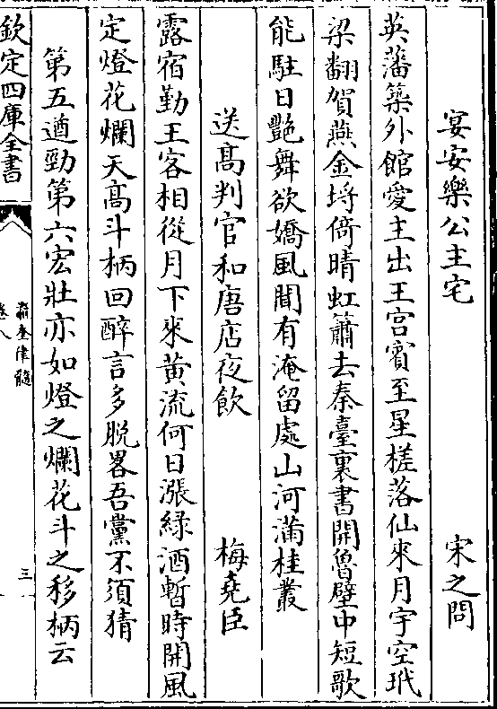 宴安乐公主宅 宋之问英藩筑外馆爱主出王宫宾至星槎落仙来月宇空玳