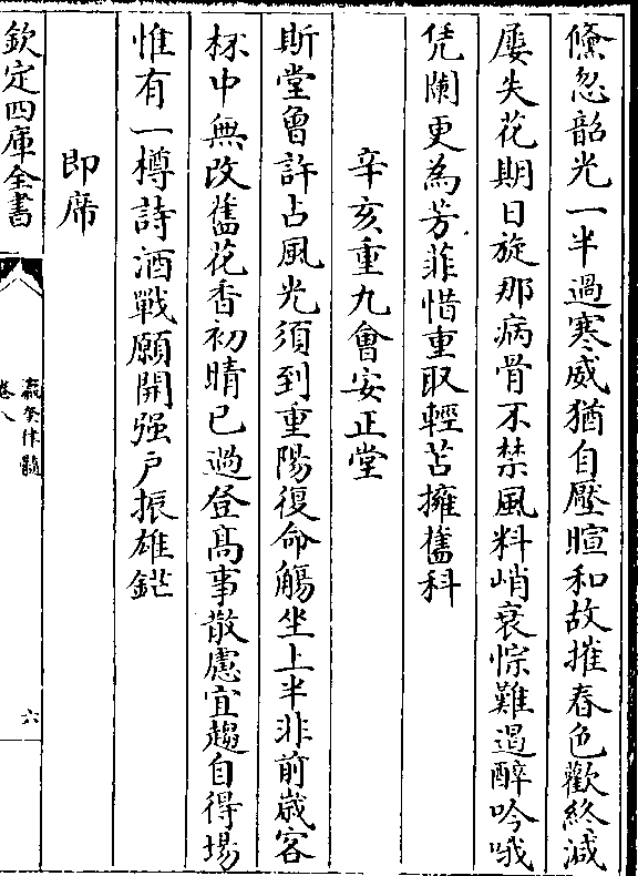 斯堂曾许占风光须到重阳复命觞坐上半非前岁客