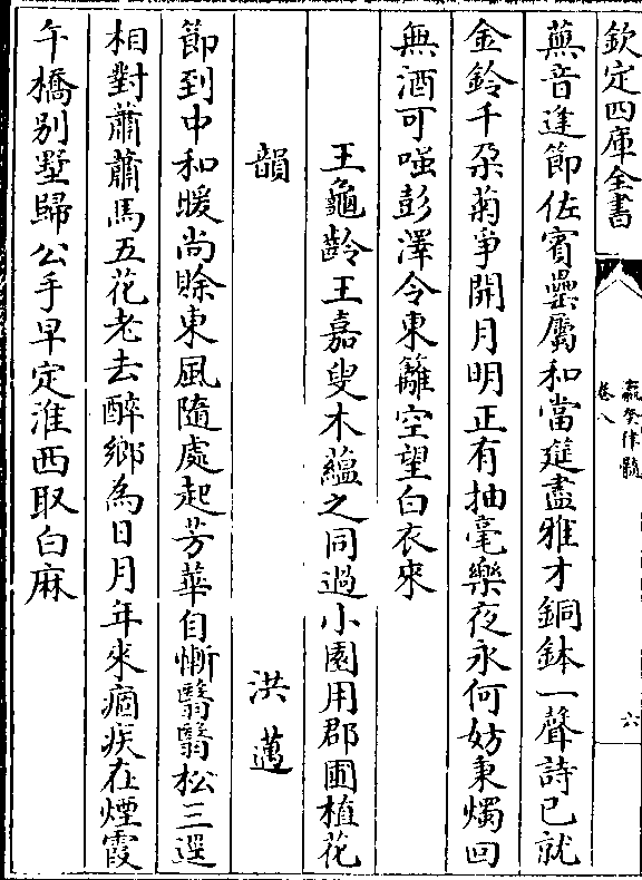王龟龄王嘉叟木蕴之同过小园用郡圃植花
