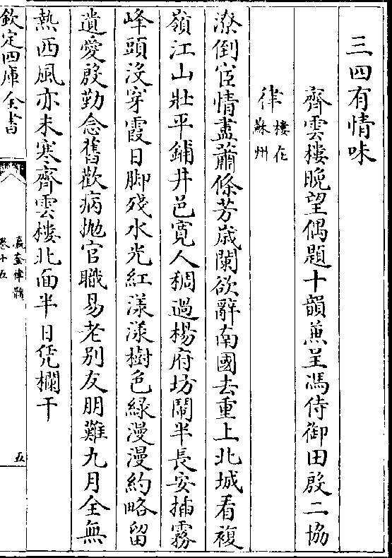 三四有情味齐云楼晚望偶题十韵兼呈冯侍御田殷二协
