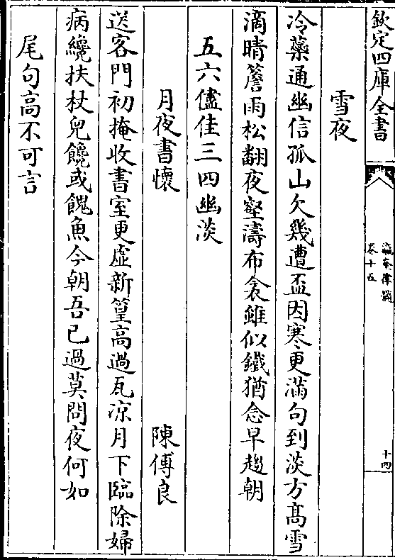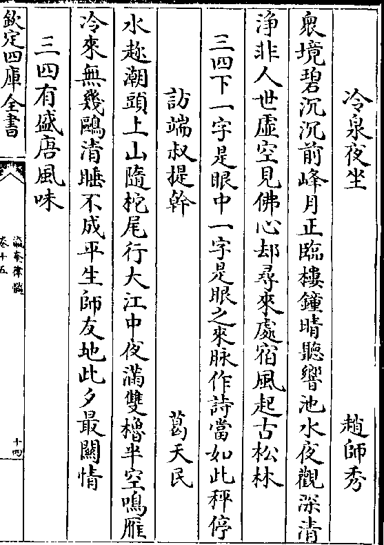 中四句苦淡末句脱洒高妙赵紫芝雪晴江月圆全