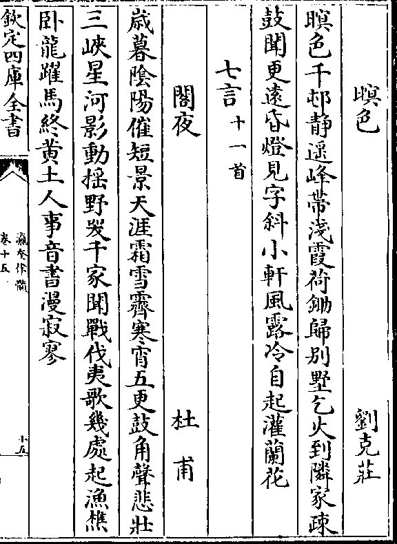 道途晚归斋阁夜坐眺暝色数长更诗思之幽致