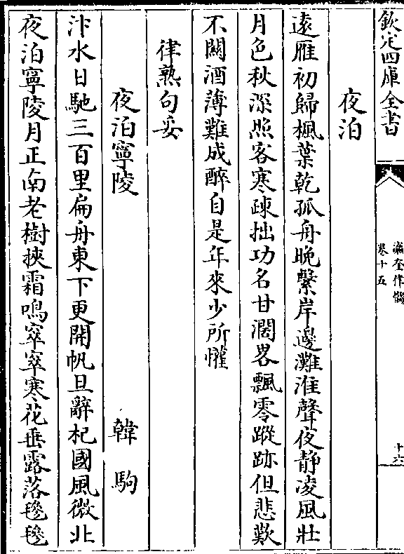夜泊宁陵月正南老树挟霜鸣窣窣寒花垂露落毵毵