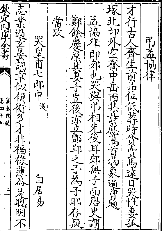 孟协律即郊也哭与吊相先后耳郊无子而唐史谓