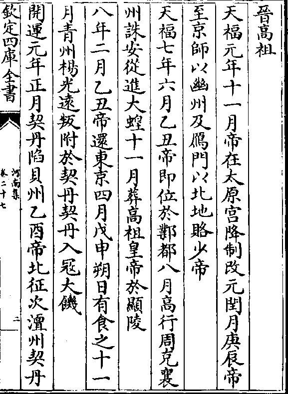 晋高祖天福元年十一月帝在太原宫降制改元闰月庚辰帝