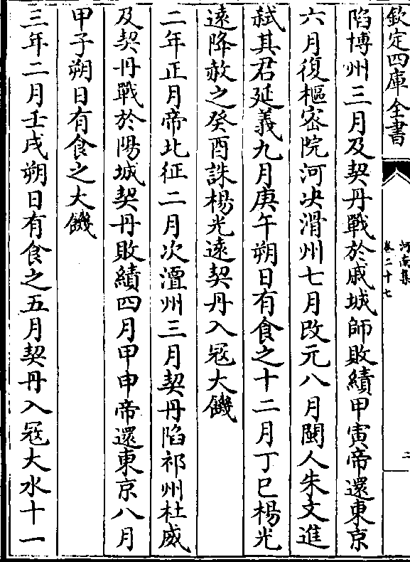 三年二月壬戌朔日有食之五月契丹入寇大水十一