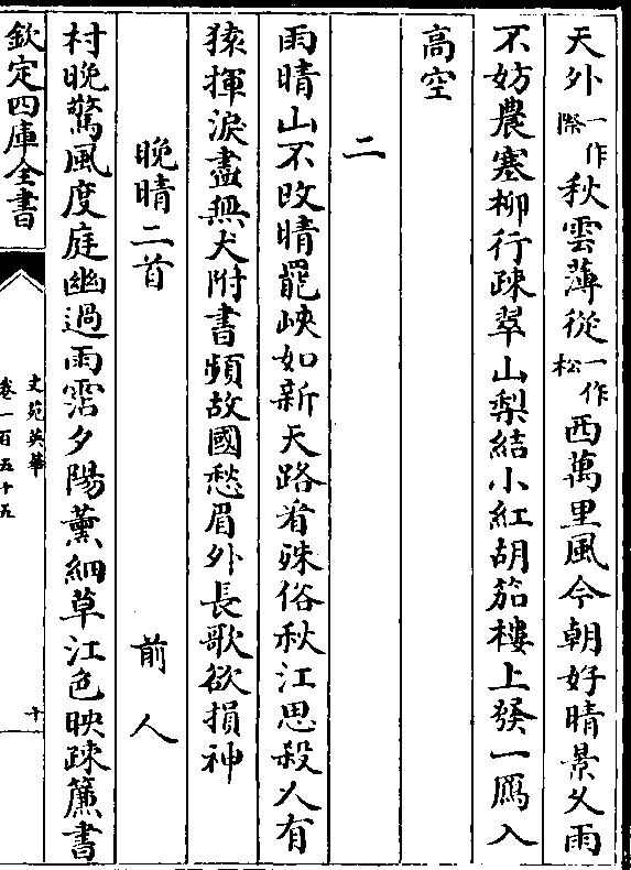 说(集作/凤沼)霖初霁但见(集作/觉)尧天日转明四野山河同(集/作)(通/)远色千家砧杵共秋声遥指(集作/想)青云丞相府何时