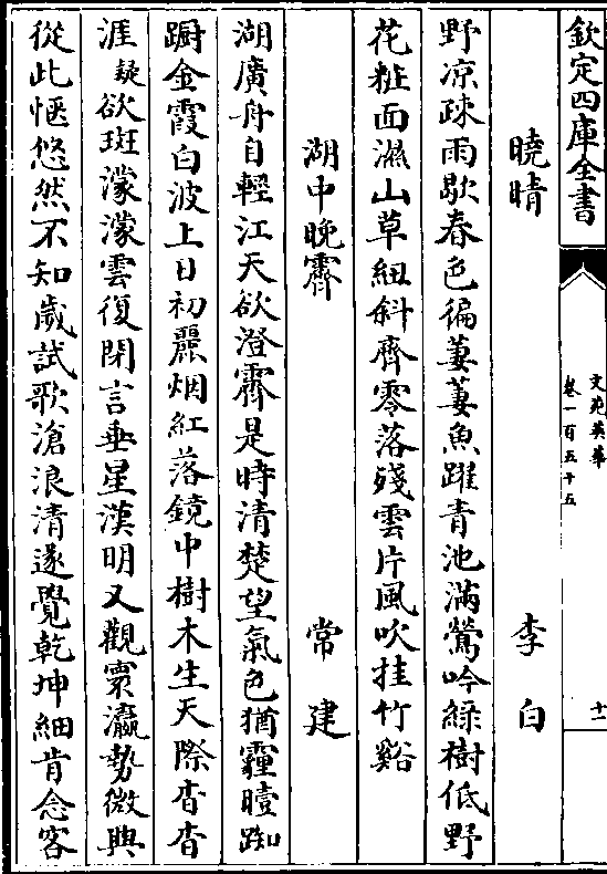 晓晴 李 白野凉疏雨歇春色遍萋萋鱼跃青池满莺吟绿树低野